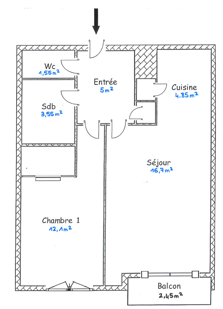 3 pièces 1 chambres 43.75 m²